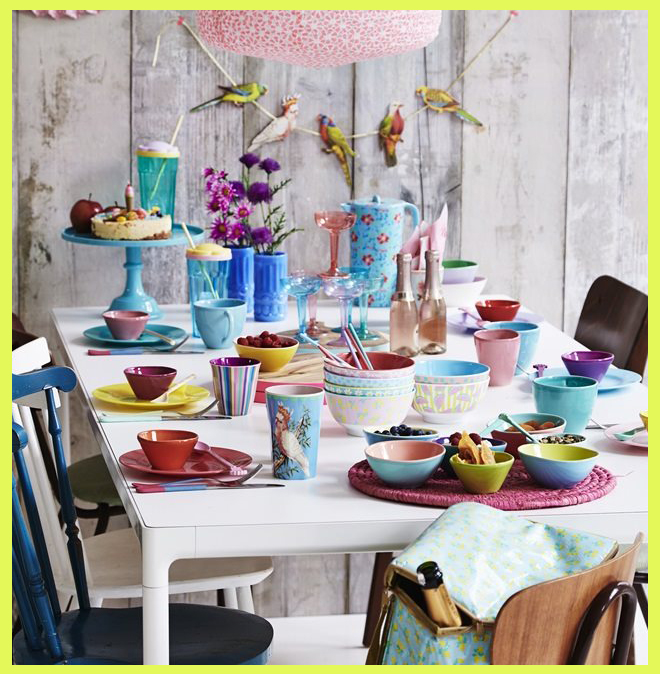 Afgelopen week kwam een grote doos van Rice DK binnen. Ik had me er al op verheugd want ik word altijd zo vrolijk van Rice. De producten zijn van hoogwaardige kwaliteit en vooral heel kleurrijk. Het servies van Melamine kan tegen een stootje (Kidsproof), hoewel mijn neefje het toch voor elkaar krijgt om het te breken!